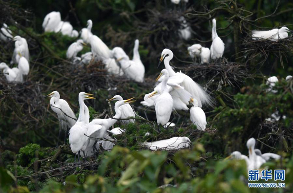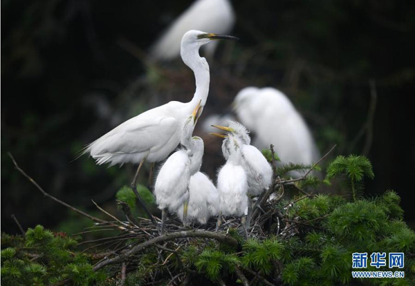 近期,在位于鄱陽(yáng)湖畔的江西省南昌市新建區(qū)象山森林公園內(nèi),已安家筑巢的鷺鳥進(jìn)入孵化哺育旺季。象山森林公園有著“鷺鳥王國(guó)”的美譽(yù),每年都會(huì)吸引白鷺、蒼鷺、夜鷺等種類的鷺鳥飛抵棲息和繁衍后代。