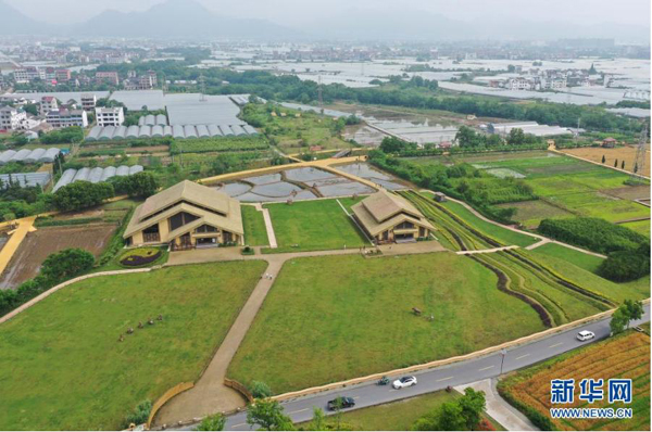 5月12日拍攝的位于浙江省浦江縣的上山考古遺址公園(無人機(jī)照片)。