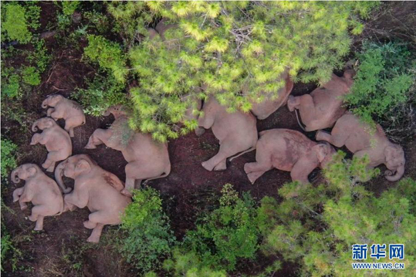 這是6月13日在云南省玉溪市易門(mén)縣十街鄉(xiāng)拍攝的象群(無(wú)人機(jī)照片)。