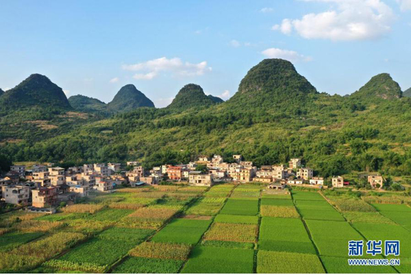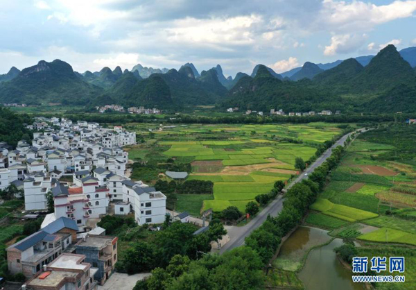 盛夏時(shí)節(jié),廣西平樂(lè)縣張家鎮(zhèn)田園郁郁蔥蔥,美不勝收(7月14日攝,無(wú)人機(jī)照片)。