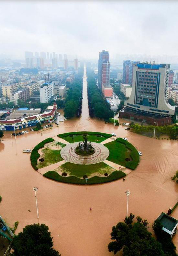 7月22日,河南安陽開發(fā)區(qū)七仙女環(huán)島被淹沒(無人機拍攝)。新華社發(fā)(馬丁 攝)