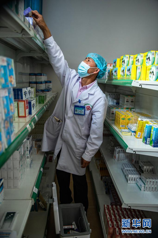 章忠武在選取巡診備用的藥品(8月16日攝)。新華社記者 陶亮 攝