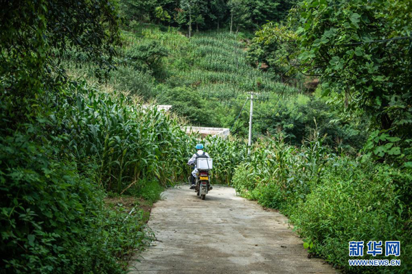 章忠武騎車前往村民家(8月16日攝)。新華社記者 陶亮 攝