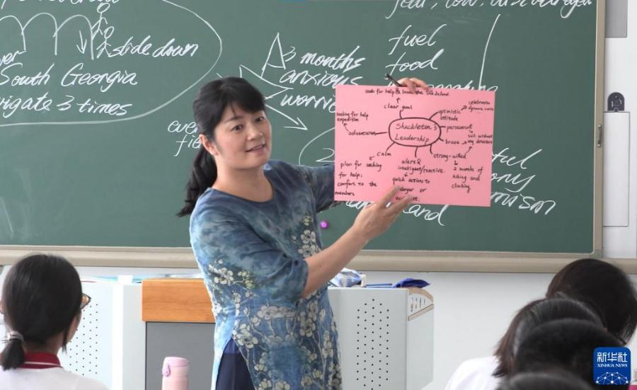北京市匯文中學(xué)教育集團(tuán)英語教師羅錦虹在給學(xué)生上課(資料照片)。新華社發(fā)