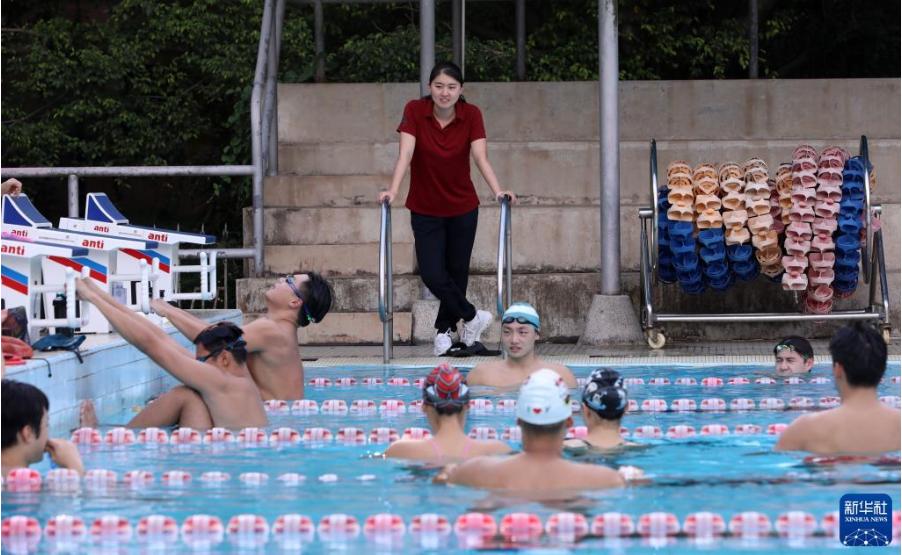 9月7日,奧運(yùn)冠軍焦劉洋為學(xué)生們上游泳課。新華社記者 黃國保 攝
