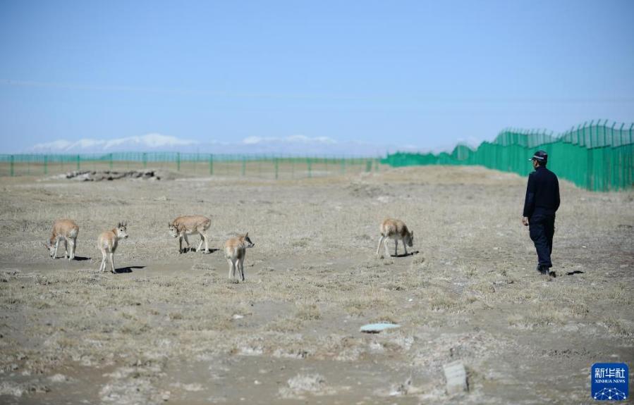 在可可西里國(guó)家級(jí)自然保護(hù)區(qū)索南達(dá)杰保護(hù)站,幾只藏羚羊在野生動(dòng)物救助中心活動(dòng)(9月28日攝)。