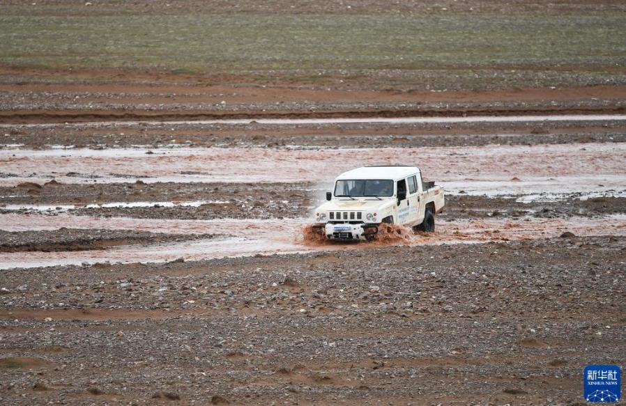 巡山隊(duì)員在可可西里地區(qū)駕車(chē)巡山(2020年7月8日攝)。
