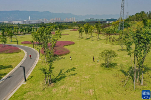 10月2日,人們在重慶市兩江新區(qū)粉黛山公園游玩。