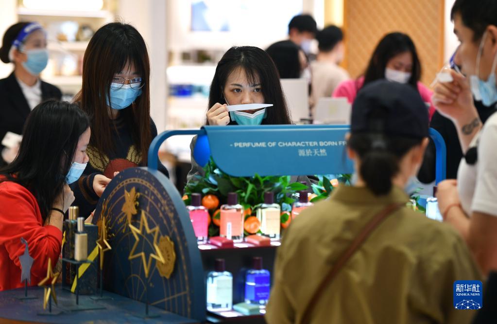 1月3日,顧客在海口日月廣場免稅店選購香水。