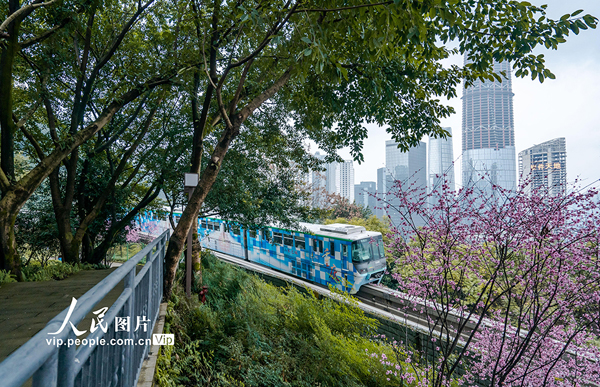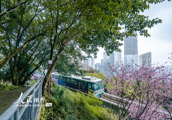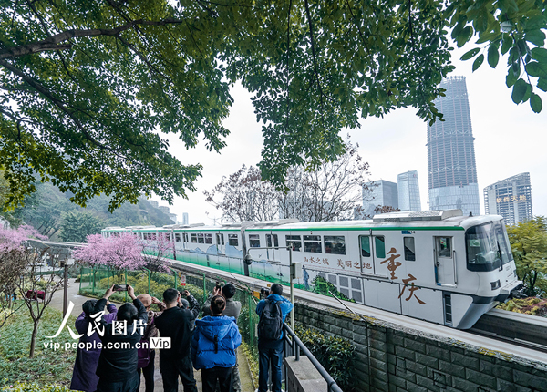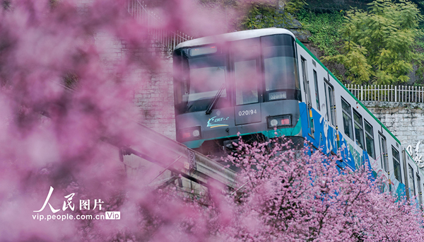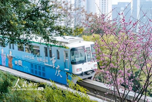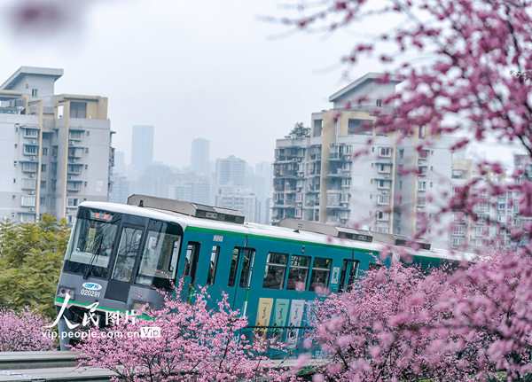 2022年2月20日,重慶市軌道交通二號(hào)線佛圖關(guān)段的美人梅迎春綻放,列車(chē)穿行花海,猶如開(kāi)往春天的列車(chē)。