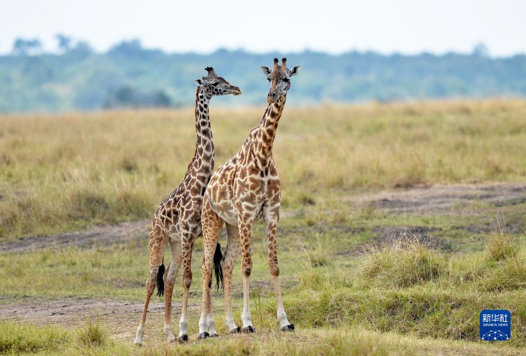 這是2021年8月30日在肯尼亞馬賽馬拉國家保護區(qū)拍攝的長頸鹿。
