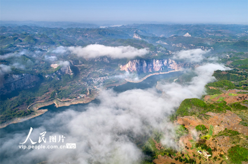 2022年4月3日,貴州省黔西市新仁苗族鄉(xiāng)化屋村雨后初霽,壯麗的山川、秀美的六沖河,連同峽谷中飄動(dòng)的晨霧,構(gòu)成一幅美麗的烏江源春日畫卷。