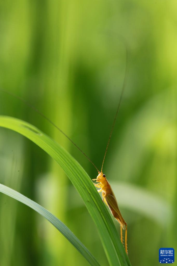 4月30日,昆蟲在云南省西雙版納傣族自治州景洪市瀾滄江濕地的草叢中舞動觸須。