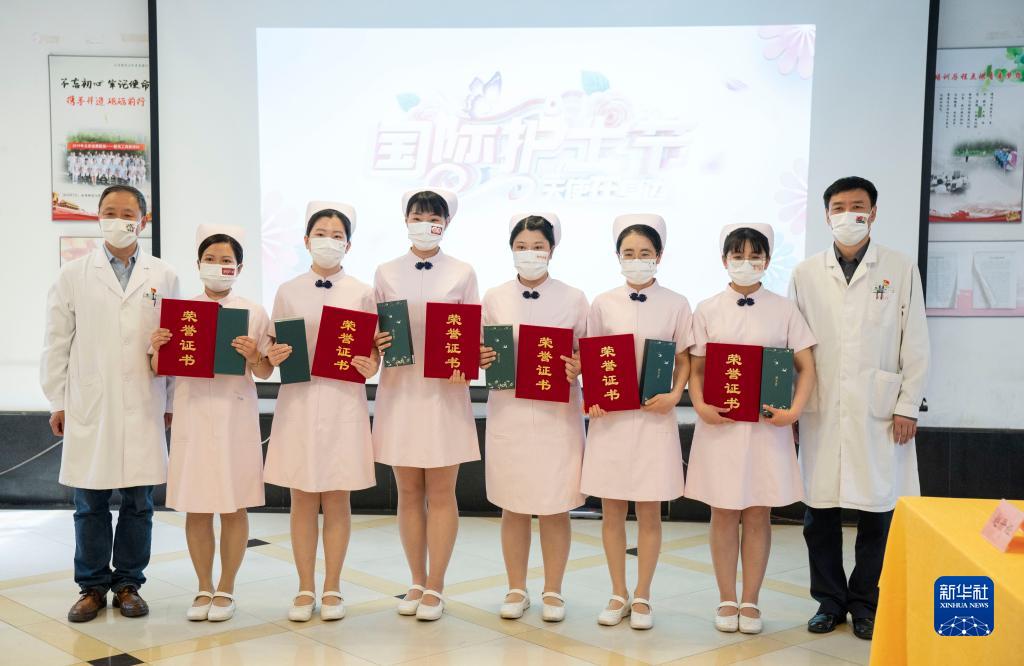 5月11日,在北京按摩醫(yī)院舉行的國際護(hù)士節(jié)慶祝活動上,獲得“優(yōu)秀服務(wù)之星”稱號的護(hù)士領(lǐng)取獎(jiǎng)狀。