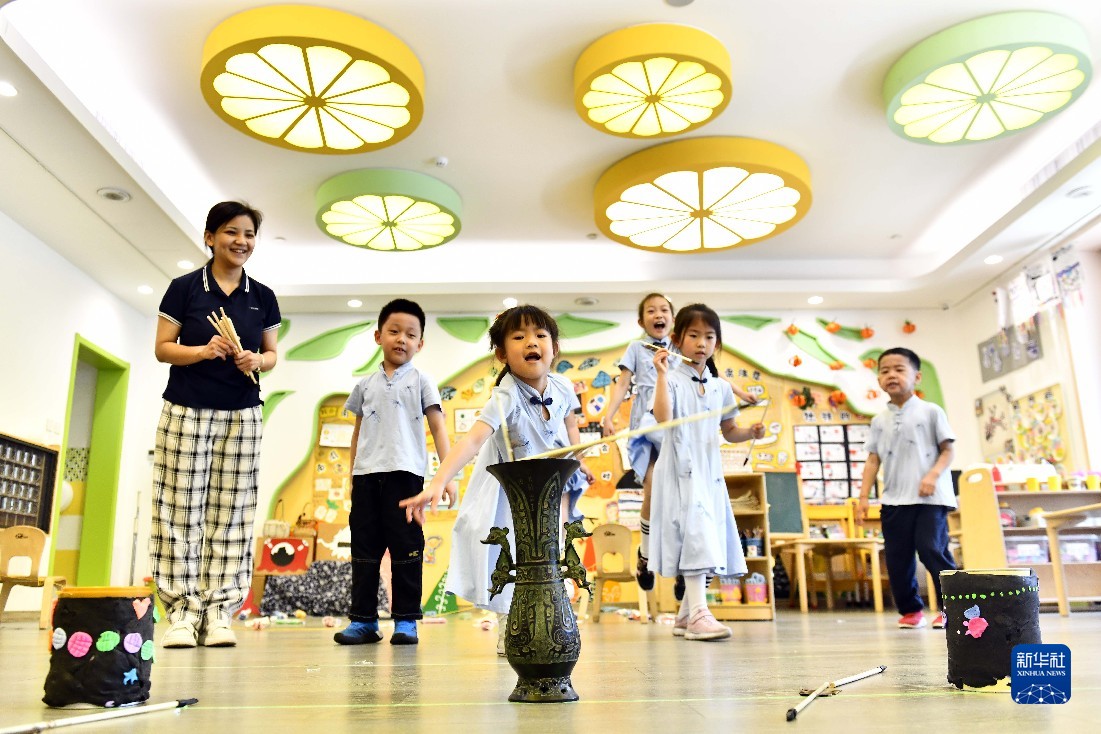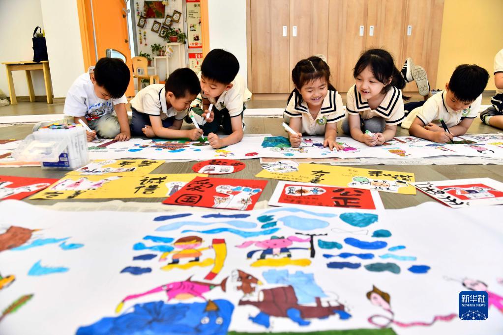 為讓幼兒從小感受中華傳統(tǒng)文化魅力,山東省實驗幼兒園通過項目化學習、舞臺傳經(jīng)誦典、挖掘節(jié)日文化、開展特色文化活動等形式,努力讓傳統(tǒng)文化沁潤童心,讓詩詞畫意陪伴快樂童年。新華社記者 郭緒雷 攝