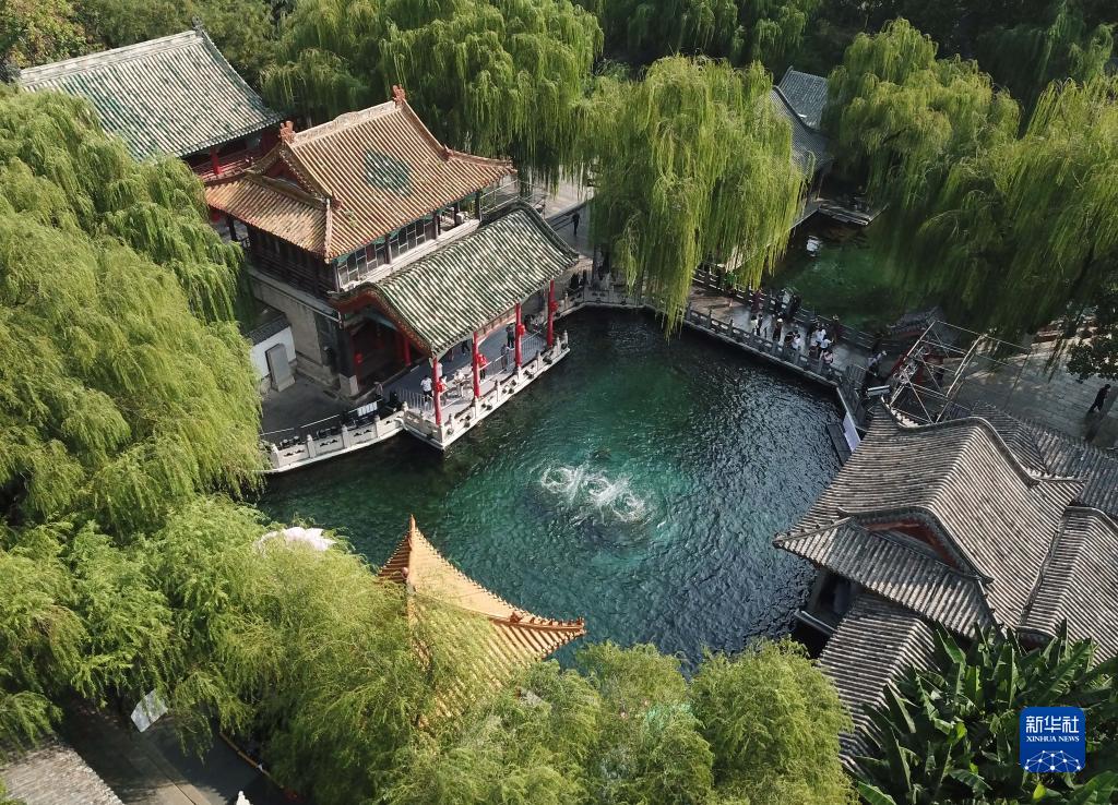 9月6日,濟(jì)南趵突泉泉水噴涌(無人機(jī)照片)。