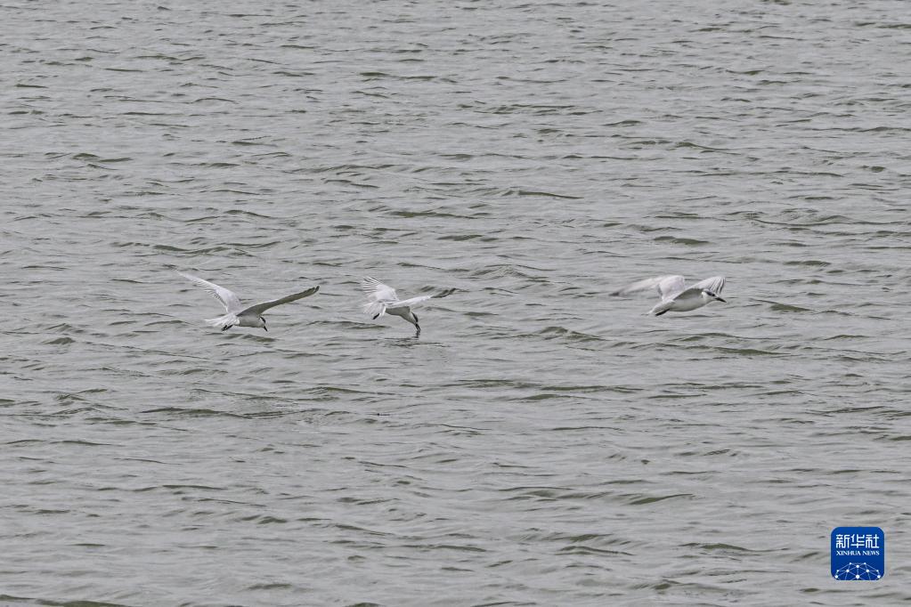 11月12日,須浮鷗在??谑忻捞m區(qū)一處濕地覓食。
