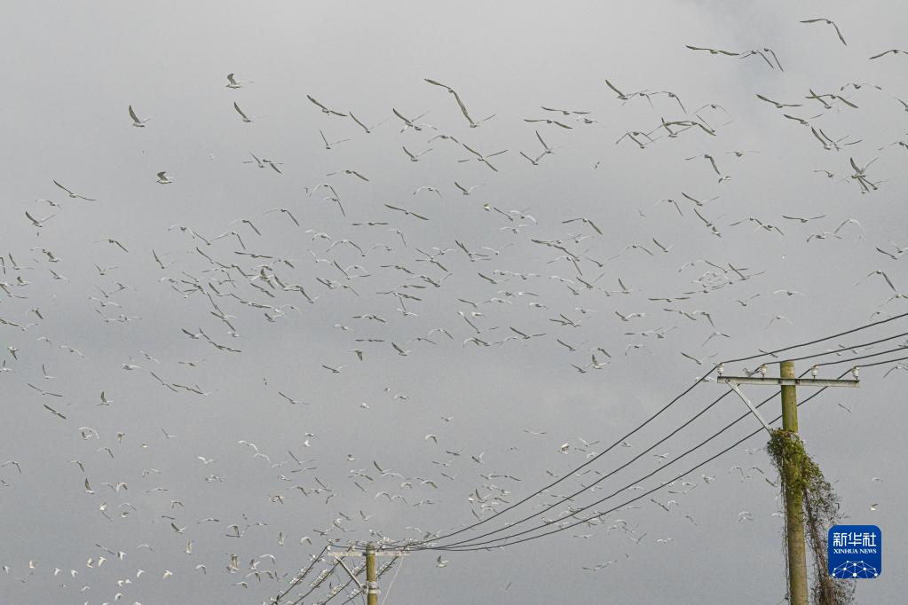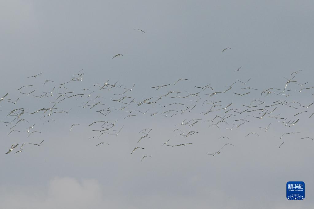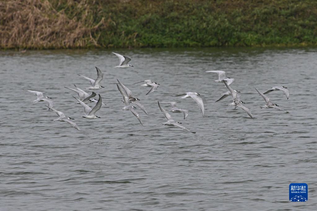 近期,不少候鳥進入海南越冬。在首批“國際濕地城市”??谑械拿捞m區(qū)一處濕地,大批前來越冬的須浮鷗呈現(xiàn)“萬鳥翔集”景象。鳥群時而群飛,時而整齊棲息,頗為壯觀。