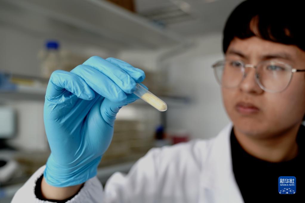11月16日,中國科學院分子植物科學卓越創(chuàng)新中心博士生朱一棟觀察需測定蛋白的玉米粉末樣品。