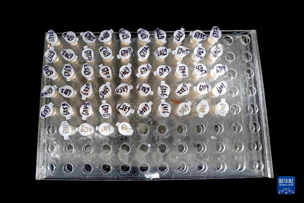 11月16日在中國科學院分子植物科學卓越創(chuàng)新中心實驗室拍攝的玉米籽粒粉末樣品。