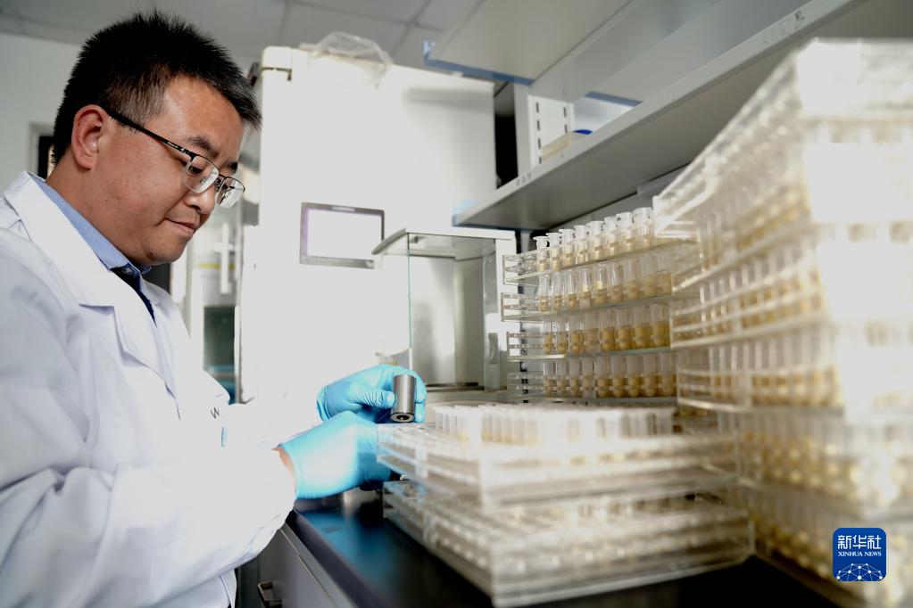 11月16日,中國科學院分子植物科學卓越創(chuàng)新中心副研究員王海海在進行玉米蛋白測定前的包樣工作。
