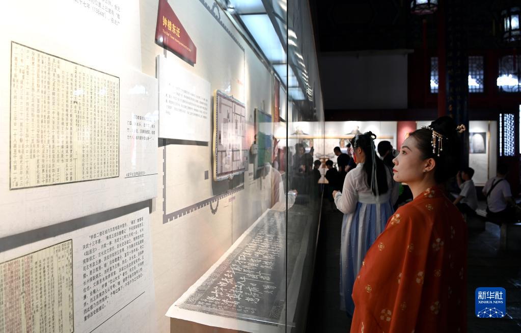 游客在西安鐘樓內(nèi)參觀游覽(5月1日攝)。