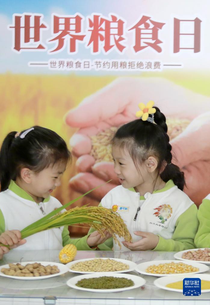 當(dāng)日是世界糧食日,各地幼兒園、小學(xué)、中學(xué)等開(kāi)展豐富多彩的活動(dòng),讓少年兒童認(rèn)識(shí)糧食、體驗(yàn)秋收,培養(yǎng)孩子們愛(ài)惜和節(jié)約糧食的意識(shí)。