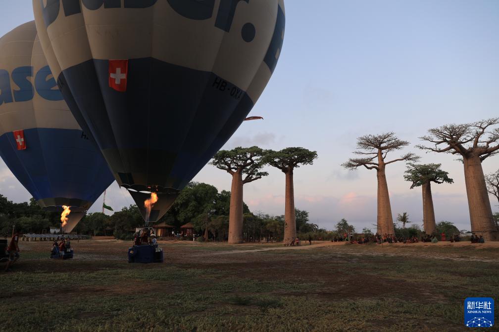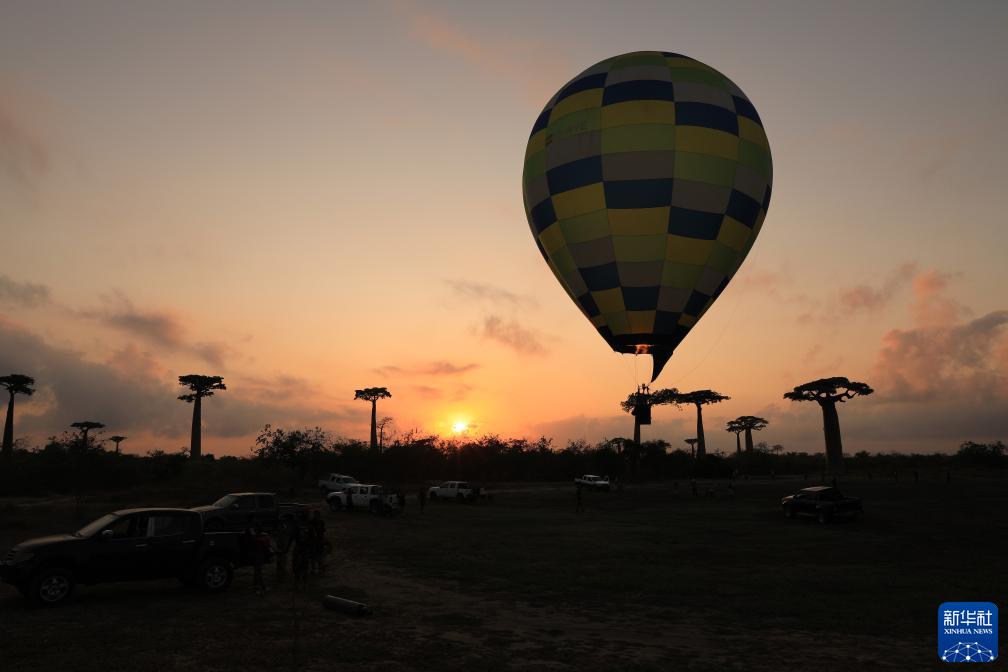 當(dāng)日,在馬達(dá)加斯加穆龍達(dá)瓦猴面包樹(shù)大道,來(lái)自瑞士、法國(guó)等國(guó)的熱氣球旅行愛(ài)好者于日出時(shí)分乘坐熱氣球升空。猴面包樹(shù)與熱氣球構(gòu)成了一道獨(dú)特的風(fēng)景。