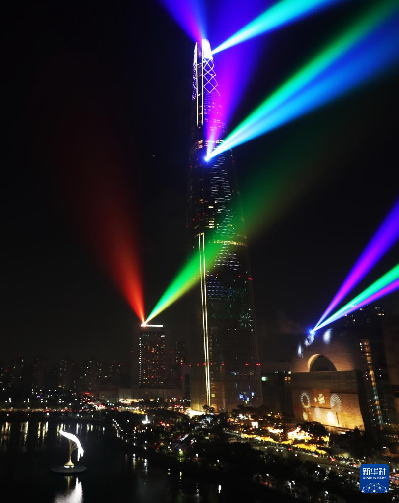 2024年1月1日凌晨,韓國(guó)首爾市地標(biāo)建筑樂(lè)天塔舉行燈光秀慶祝新年。