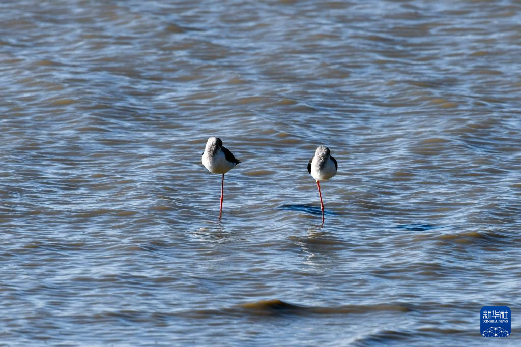 11月29日,在深圳紅樹林海濱生態(tài)公園,兩只黑翅長(zhǎng)腳鷸在休息。