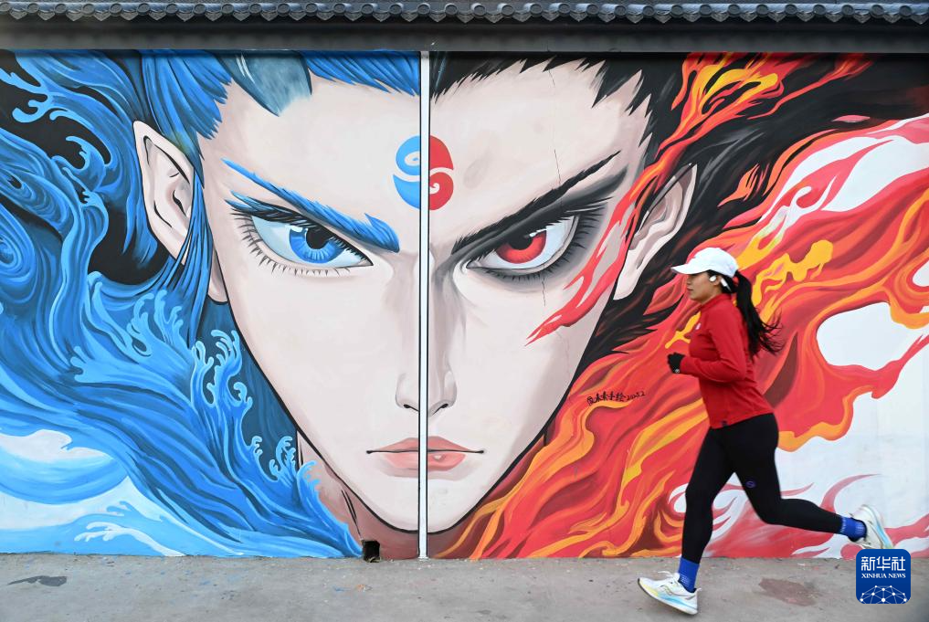 2月15日,市民從石家莊市裕華區(qū)一處哪吒主題墻繪前路過。