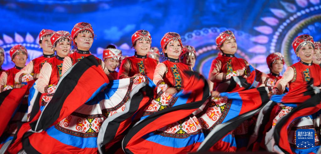 9月28日,農民廣場舞表演隊在山東省鄒平市迎國慶群眾廣場舞大賽上表演。