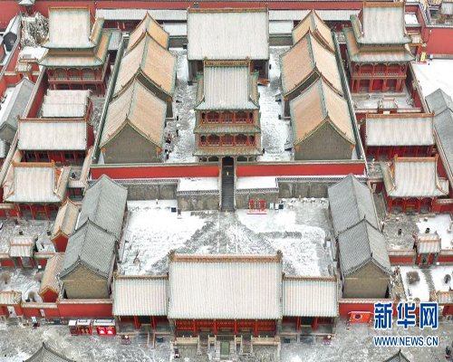 無人機(jī)航拍雪后沈陽故宮 氣勢(shì)恢